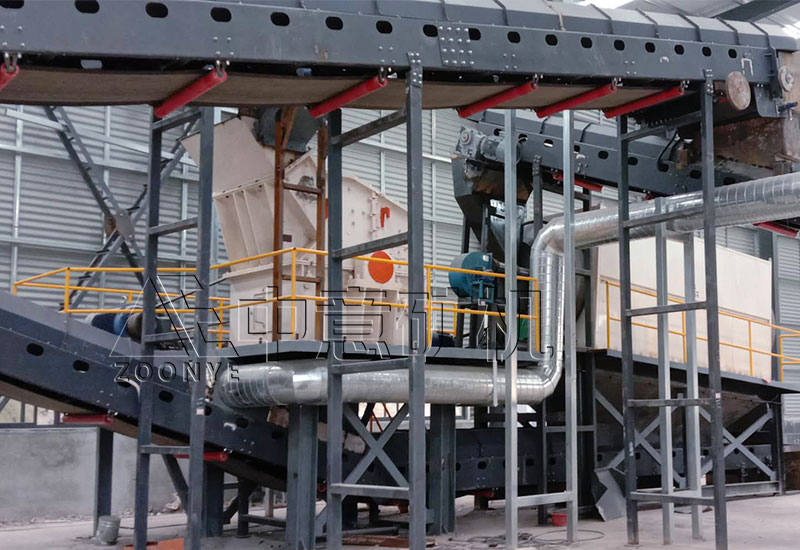 设备配置:颚式破碎机、反击式破碎机、浮选机、新型综合风选机、磁选机、板式喂料机、振动给料机、除土筛、滚筒筛、脱水筛、活性干雾抑尘机、除尘器、螺旋输送机、皮带机输送系统等。